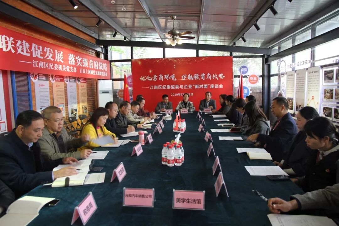 2019年12月31日,江南区纪委监委、机关党支部与百益上河城开展“助力优化营商环境,全面落实强首府战略”与企业“面对面”交流座谈会及“支部联建共发展,落实强首府战略”主题党日活动。