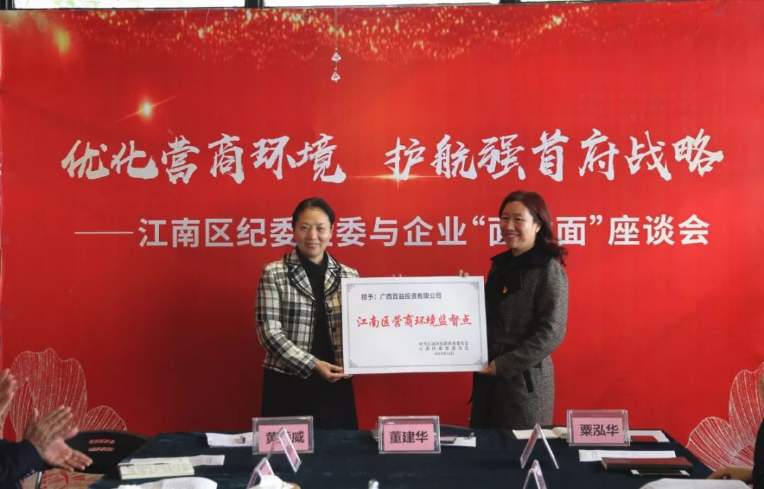 会上,江南区纪委监委授予百益投资有限公司“江南区营商环境监督点”。